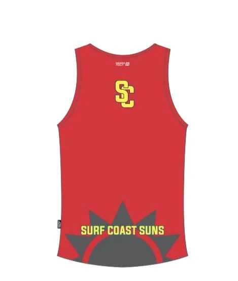 Merchandise › Surf Coast Suns Men’s Running Singlet Image 1 of 2 Image 2 of 2 Surf Coast Suns Men’s Running Singlet $35.00 LIMITED STOCK - NO FURTHER STOCK WILL BE AVAILABLE ONCE SOLDPLEASE NOTE: These singlets are NOT reversible Size: K (14) XS S Add To Cart Added! LIMITED STOCK - NO FURTHER STOCK WILL BE AVAILABLE ONCE SOLDPLEASE NOTE: These singlets are NOT reversible